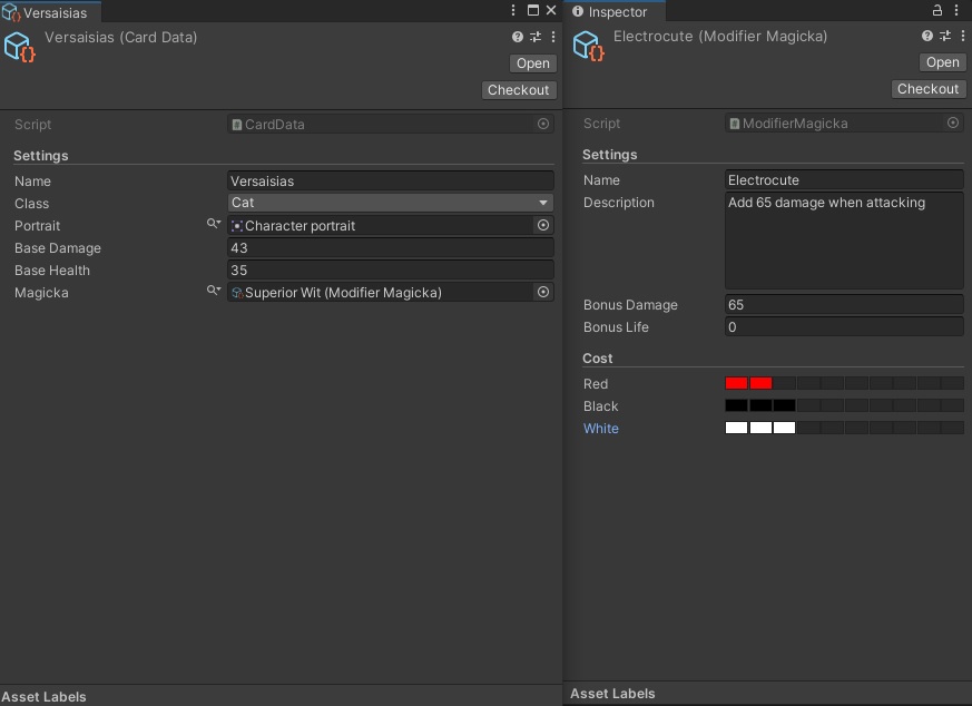 Our cards and skill are scriptable objects (data) and the card on HUD is set up during initialization after randomizing cards from a deck. I’ve exposed the setup API to allow us to debug it if something goes wrong.