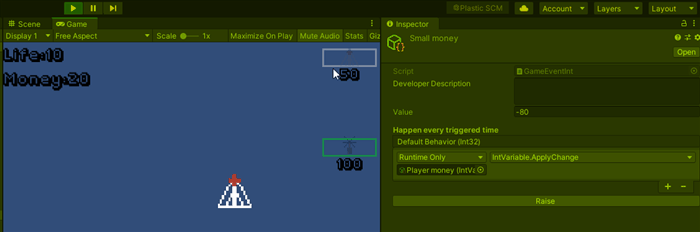 Money validation: Each button tower will vinculate itself on a OnMoneyChange event in a load step, and will enable/disable interaction based on tower cost and current money.